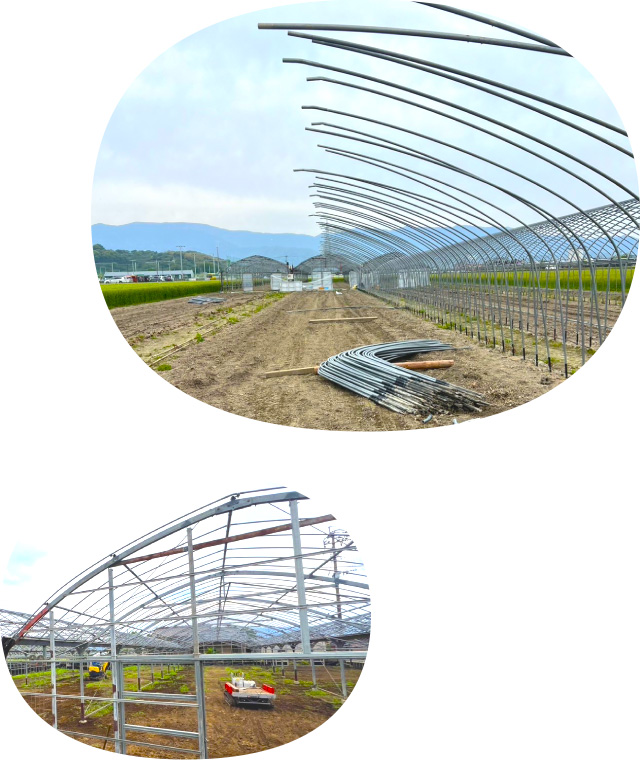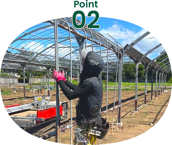 一本一本の支柱の間隔や強度を細かく計算し、精密に組立てることで、完成後も丈夫で長持ちするハウスに仕上げます。
